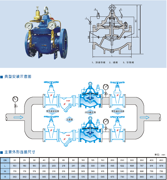 200X減壓閥是一種利用介質(zhì)自身能量了調(diào)節(jié)與控制管路壓力的智能型閥門。用于生活給水、消防給水及其他工業(yè)給水系統(tǒng),通過(guò)調(diào)節(jié)減壓導(dǎo)閥,即可調(diào)節(jié)主閥的出口壓力。出口壓力不因進(jìn)口壓力、進(jìn)口流量的變化而變化,安全可靠地將出口壓力維持在設(shè)定直上,并可根據(jù)需要調(diào)節(jié)設(shè)定直以達(dá)到減壓目的。該閥減壓精確,性能穩(wěn)定、安全可靠、安裝調(diào)節(jié)方便,使用壽命長(zhǎng)。