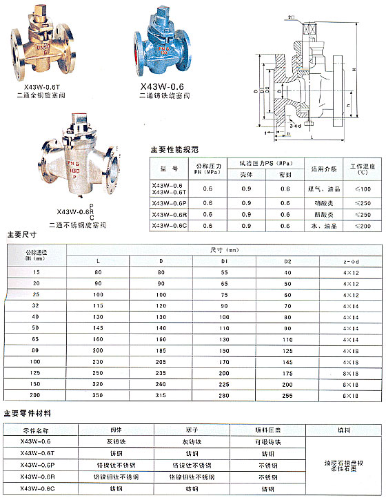 X43W二通全銅-鑄鐵-不銹鋼旋塞閥