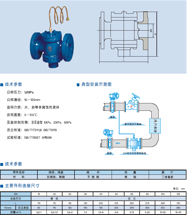 ZYC自立式壓差控制閥是一種利用介質(zhì)自身的壓力變化進行自我控制,從而保持流經(jīng)該被控系統(tǒng)介質(zhì)壓差不變的閥門。適用于供暖方式用雙管系統(tǒng)的壓差控制,從而保持流經(jīng)該被控系統(tǒng)介質(zhì)壓差不變的閥門。適用于供暖方式采用雙管系統(tǒng)的壓差控制。保證系統(tǒng)壓差基本不變,降低噪音,平衡阻力,消除熱網(wǎng)和水力失調(diào)。