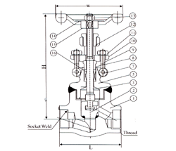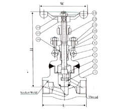 截止閥的設(shè)計與制造符合 APl602,BS53 52和ASME B16.34。檢驗(yàn)與測試按APl598,標(biāo)記按MSS-SP-25。