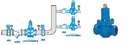 Y110、Y416減壓穩(wěn)壓閥,已發(fā)展為第二代產(chǎn)品,主要特點: 1、 DN65口徑以上用活塞式。替了膜片提高壽命3倍以上; 2、 DN50口徑以下,用尼龍強化橡膠的平膜片代替了原來的膜片,也提高壽命3倍以上。